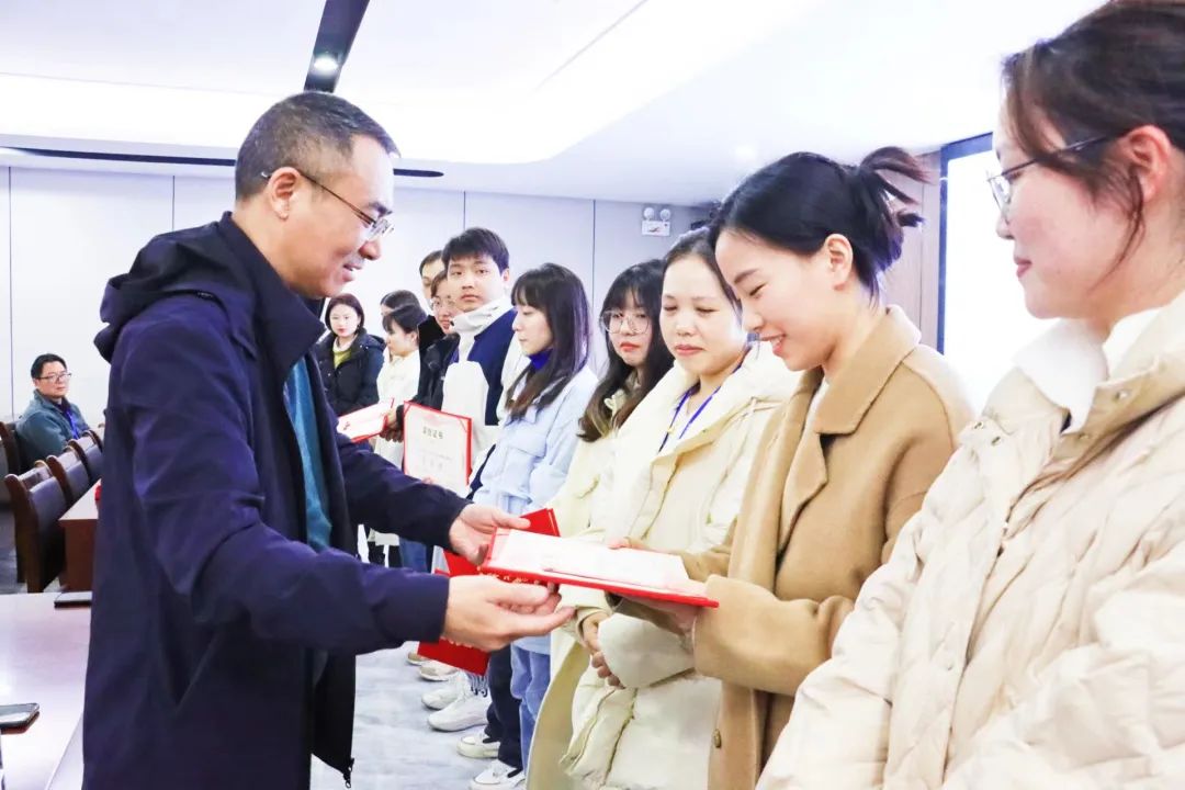 為表彰優(yōu)秀,樹立榜樣,進一步強化“青藍工程”以及教研教改實效,2023年3月1日晚,江灣高中在校圖書館(正心樓)會議室召開全體教職工大會,隆重表彰獲獎青年教師。